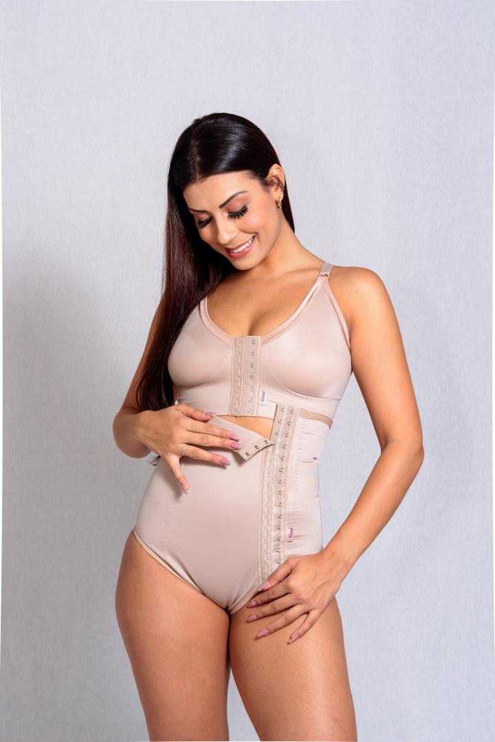 Temos excelentes modeladores que contribuem com a postura. Em casos como o seu (mais de 60 dias após o parto), uma ótima opção é a Faixa de 16 barbatanas. Principalmente para sua dor nas costas. Ah, lembrando que temos sutiãs de amamentação, viu?